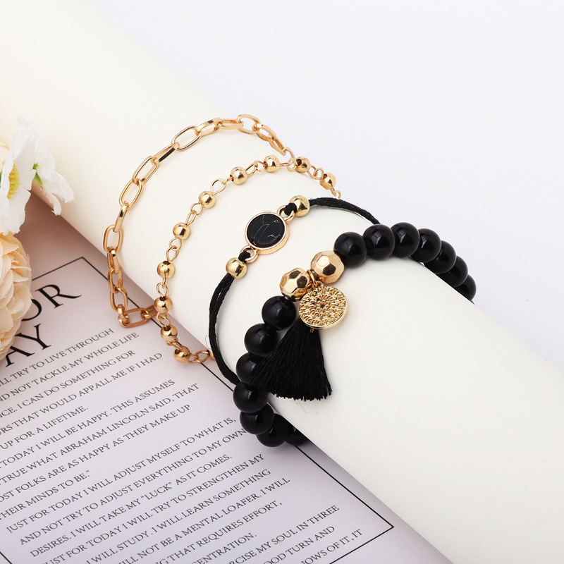 速売通の新型人気ビーズ松石流蘇円片ブレスレット欧米ファッション創意ブレスレット4点セット卸売り