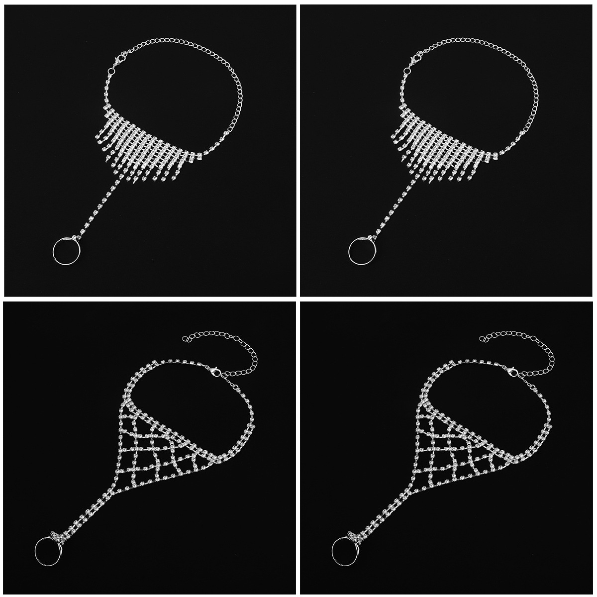 欧米のクロスボーダーの新型の超きらめく水ドリルの手足のバックチェーンのファッション的な個性の指輪の一体の足のチェーンのアクセサリーの4セット