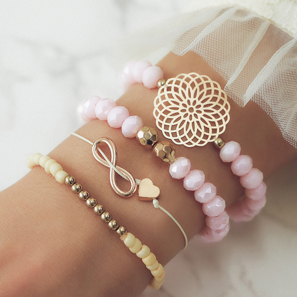 欧米のクロスボーダーのアクセサリーのアイデア8字の蝶結びの透かし彫りの愛のブレスレットの丸いビーズの4つのセットのブレスレットの卸売り