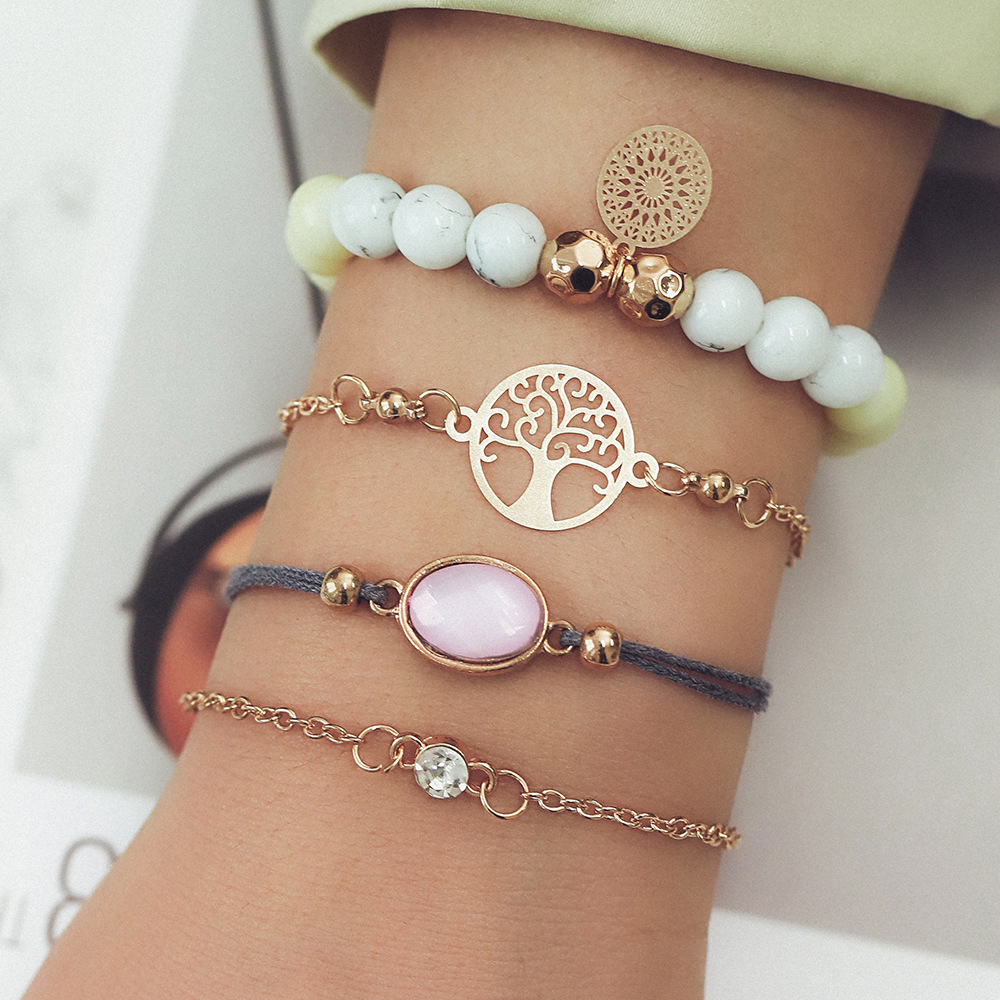 速売通の新型wishガラスビーズのブレスレットの女性は生命の木の個性のブレスレットの4つのセットを入れます。