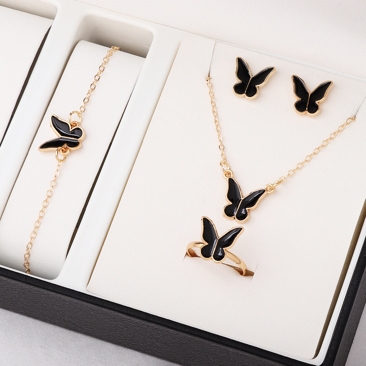 欧米の起爆ジュエリー女性ファッション気質個性蝶ネックレスピアスリングブレスレット4点セット品卸売り