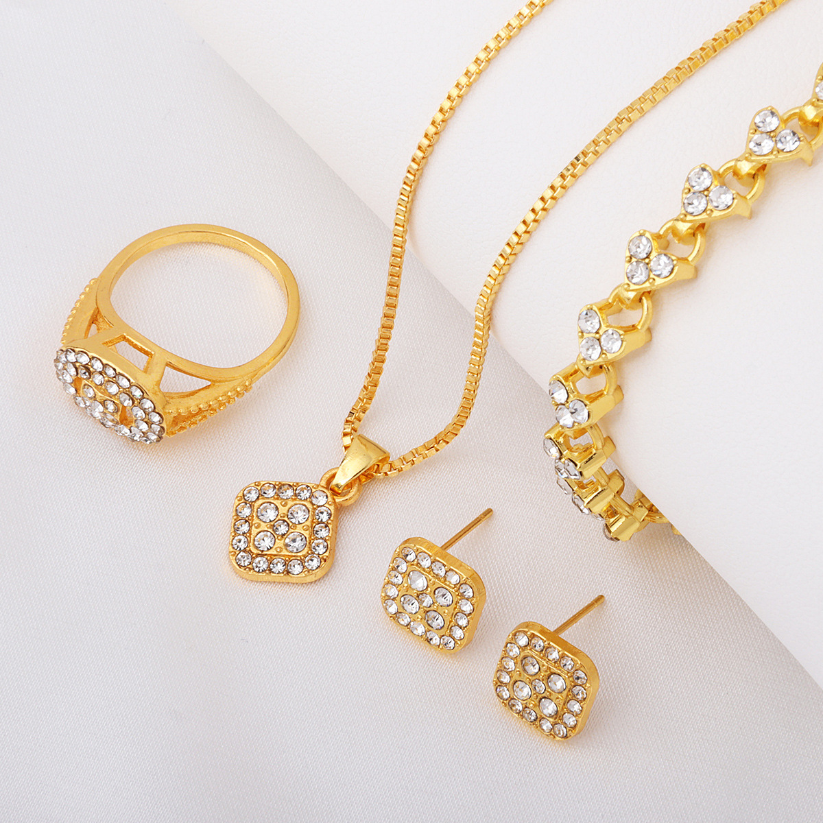 エレガントで豪華な光沢のある絶妙なネックレス、イヤリング、リングセット、装飾品、創造的で美しい、ファッショナブルで多用途な記念ギフト