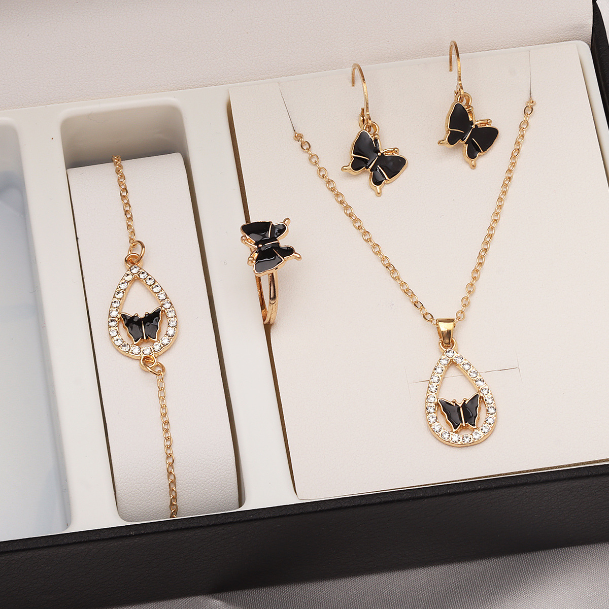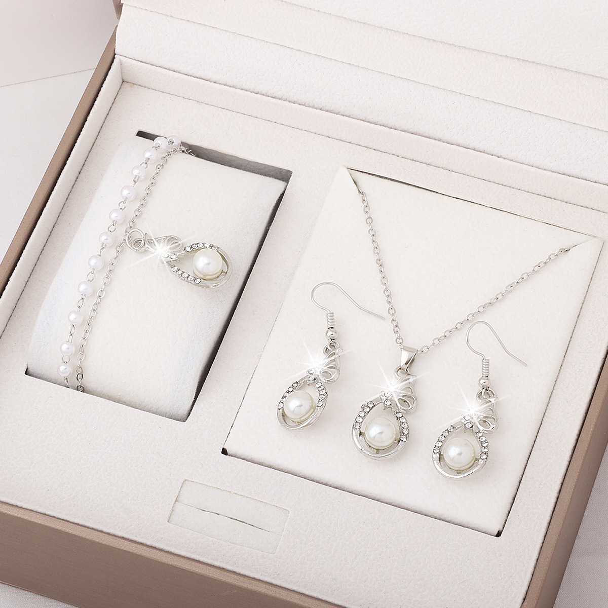 対外貿易の新商品はダイヤモンドの真珠の蝶の装飾品のイヤリングのネックレスのファッションの気質を持ってダイヤモンドのブレスレットのアクセサリーのセットを入れます。
