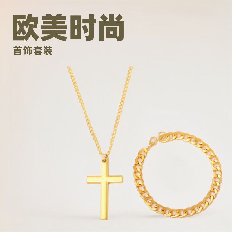 ヨーロッパとアメリカのクロスボーダーホットセールクロスネックレス男性と女性のための多用途ヒップホップカップルペンダントブレスレットジュエリーセット工場卸売