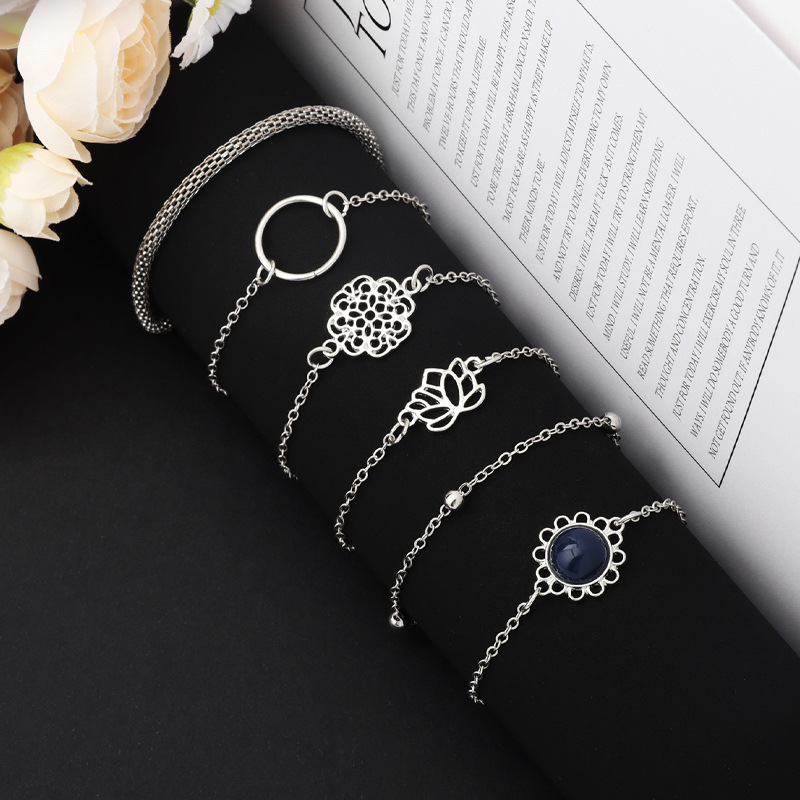 欧米の国境を越えたファッションはシンプルで、6点セットの蓮の葉の丸い石の花のチェーンの新しいブレスレットのブレスレットのセットです。