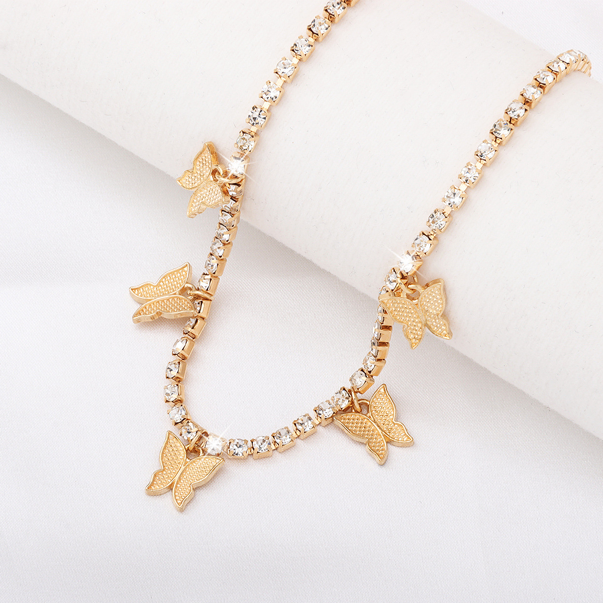 クロスボーダーホットスタイルラインストーンマルチリトルバタフライクリエイティブペンダントネックレス女性昆虫アンクレットヨーロッパとアメリカのヒップホップビーチジュエリー