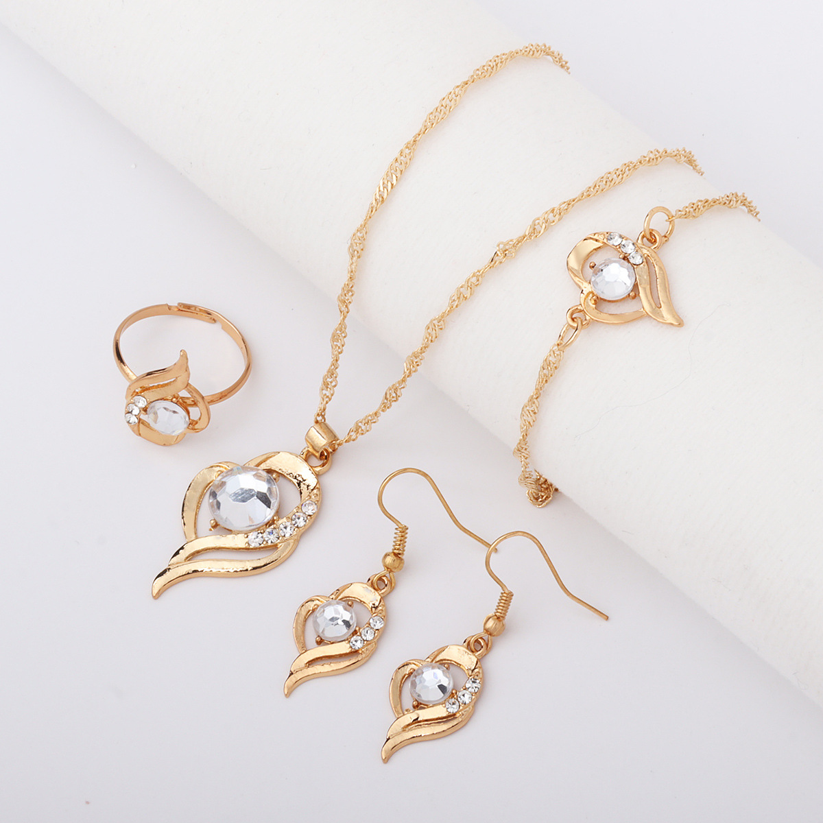 ヨーロッパとアメリカのジュエリーセット、ファッショナブルなリボンジュエリー、ネックレス、イヤリング、リング、ブレスレット、ジュエリーセット、メーカー在庫あり