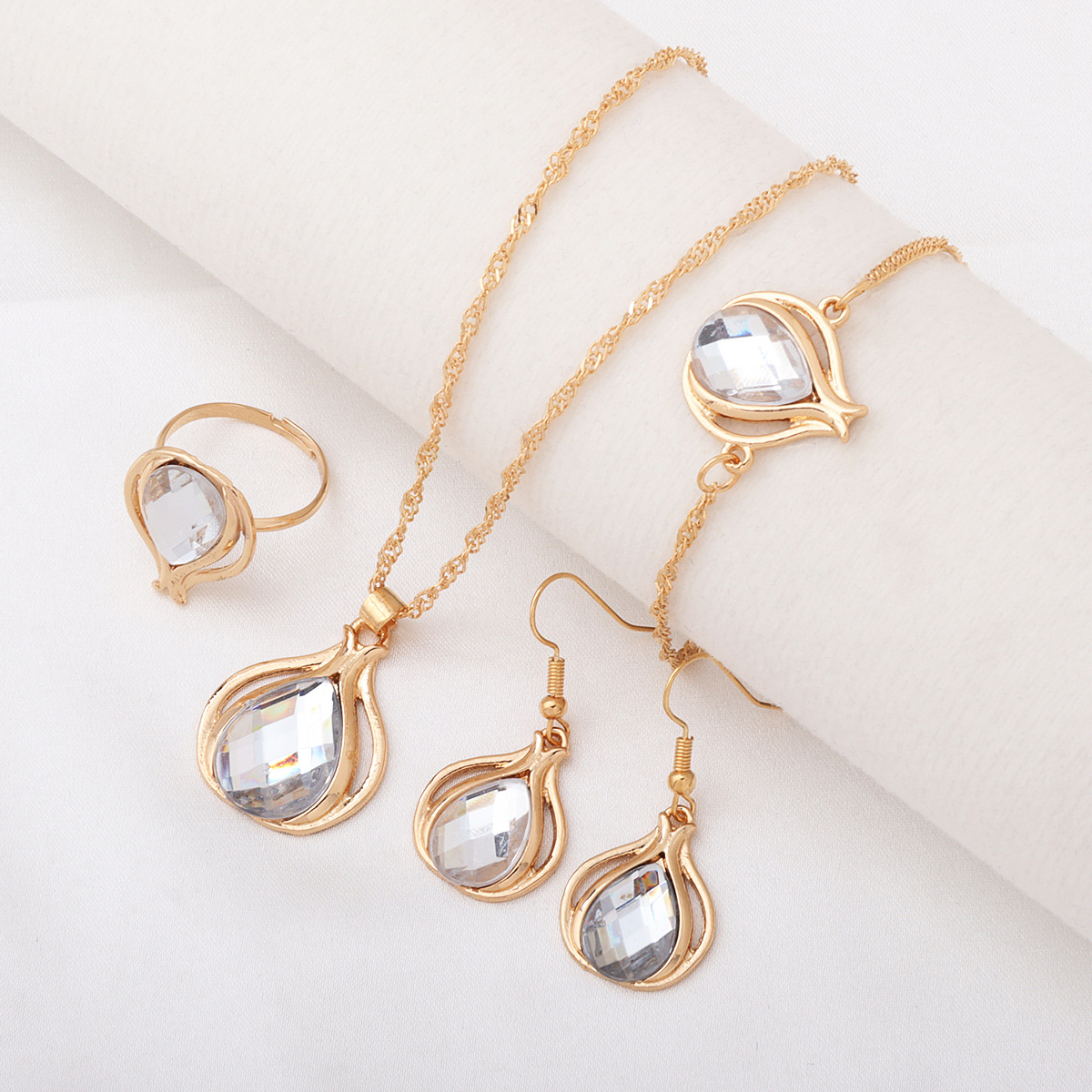 2025 クロスボーダーホット販売ウォータードロップダイヤモンドネックレスブレスレットリングイヤリングファッショントレンドジュエリージュエリーセット卸売