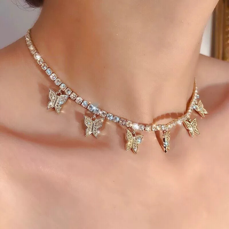 クロスボーダー爆金ドリル複数の小蝶創意ペンダントネックレス女性昆虫足鎖欧米ヒップホップビーチアクセサリー