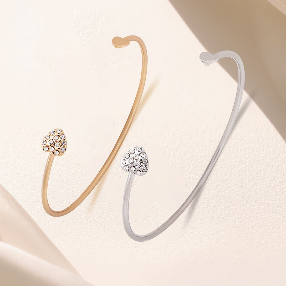 ヨーロッパとアメリカの人気の韓国スタイルのジュエリー、ダイヤモンドがちりばめられたハート型のラブブレスレット、オープンゴールドメッキブレスレット、ダブルピーチハートメーカー卸売