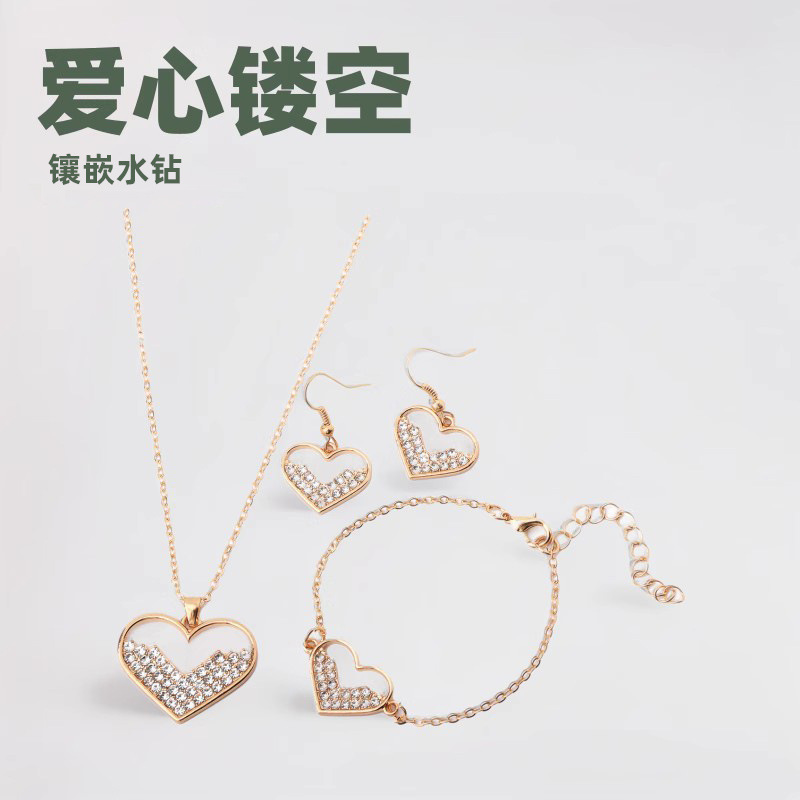 ヨーロッパとアメリカの売れ筋ラブジュエリーマイクロ象嵌カラージルコンハート型ペンダント DIY ブレスレットネックレスイヤリングジュエリーセット