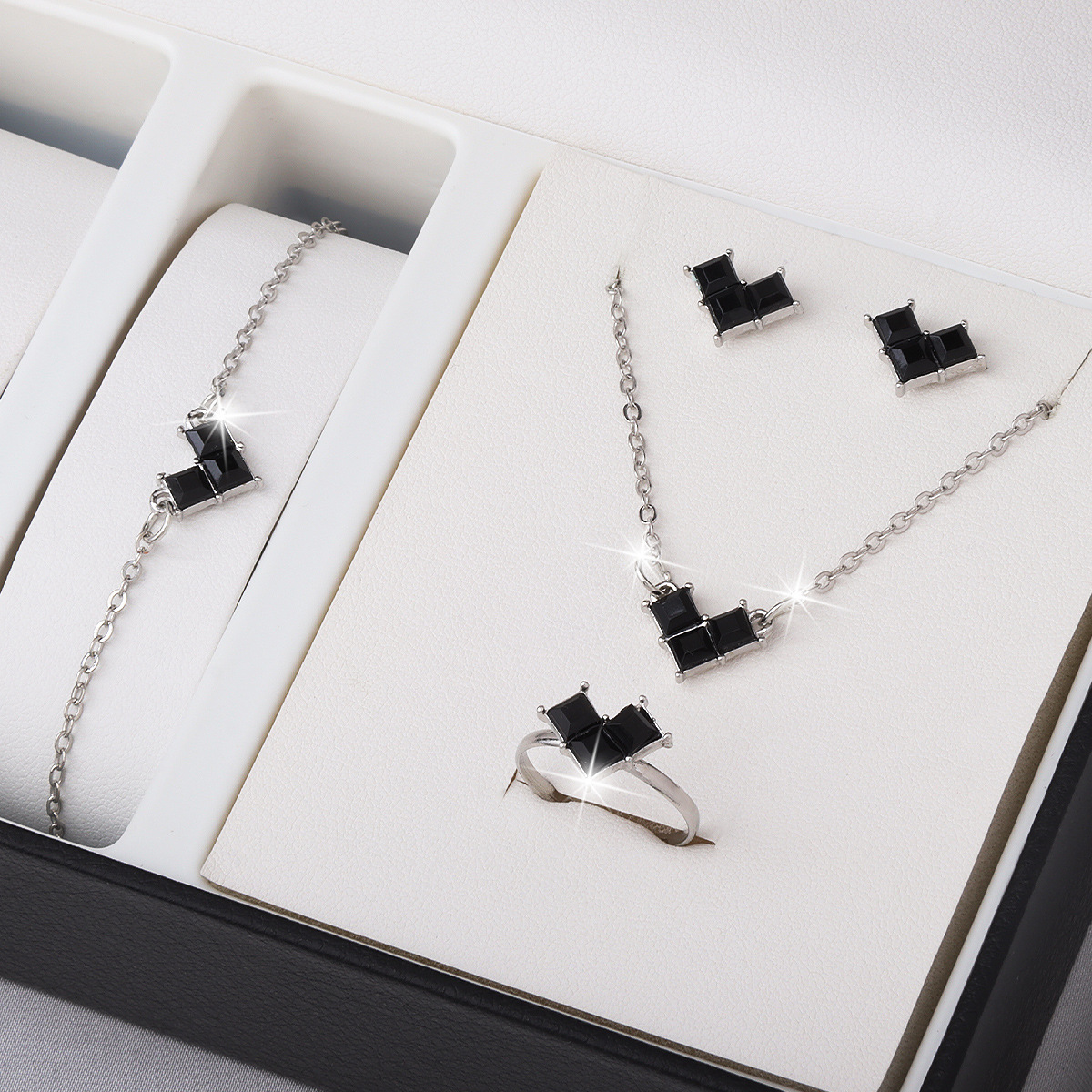 国境を越えた新しいハイエンドの黒と白の正方形の愛のダイヤモンドネックレスイヤリングブレスレットリングジュエリーセット卸売