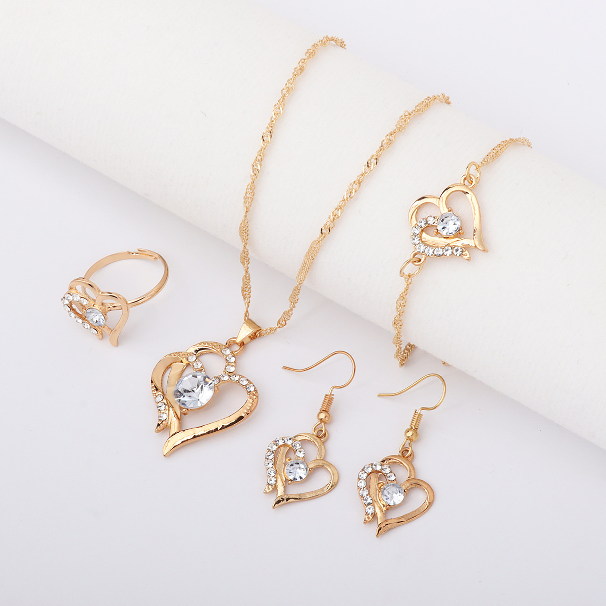 クロスボーダー速売通愛指輪ネックレスイヤリングブレスレット5点セット創意ダブルハート型気質高級熱売
