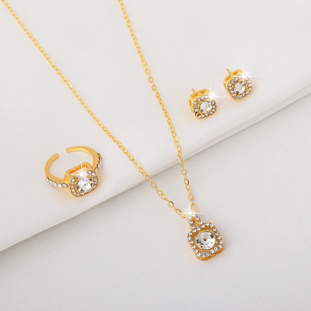 外国貿易クロスボーダーダイヤモンドジルコンセットネックレスイヤリングリングライト高級インニッチシュガーキューブファッションジュエリーセット