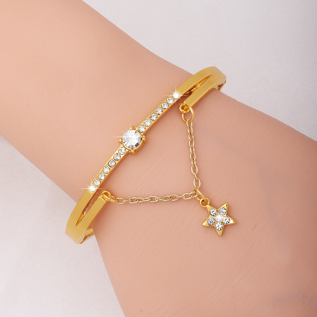 欧米の越境して新型の女性の気質の五角星はダイヤモンドのブレスレットのネットの赤い組み合わせの個性の3色の震える音の潮流の手を入れます。