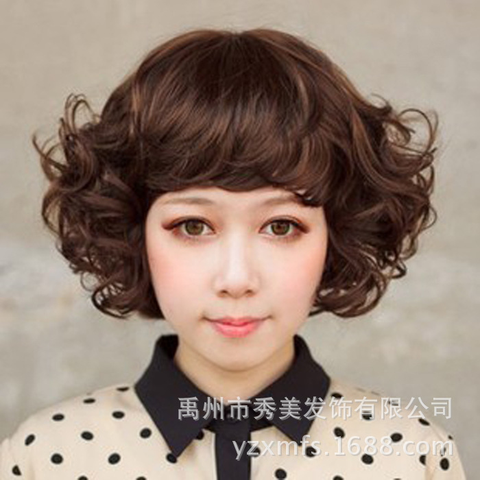 上品なかつらの質感かつらの短い巻き髪のショートヘアのふわふわしたかつらの女性の高温糸かつらカバー