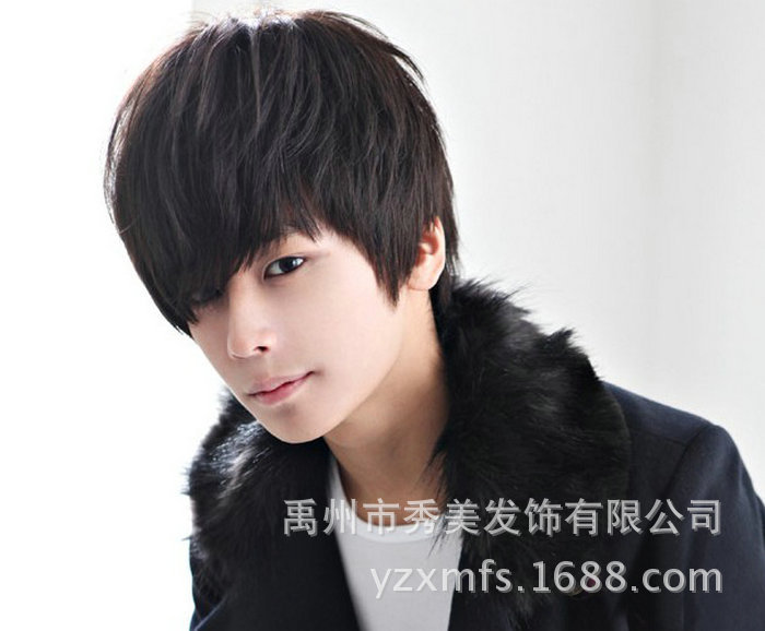 韓国版のかつらの男性のかっこいい学生のかつらのショートヘアのふわふわしている男性のかっこいい斜めの前髪