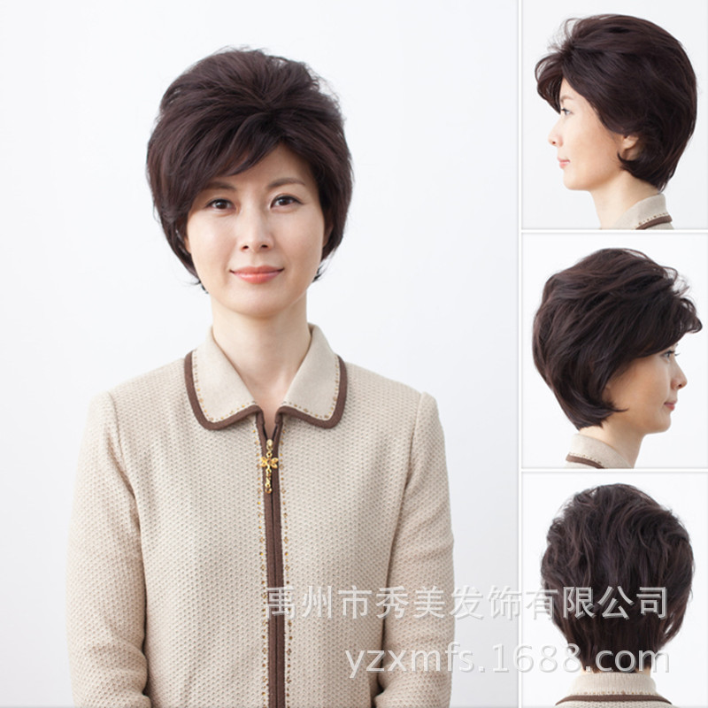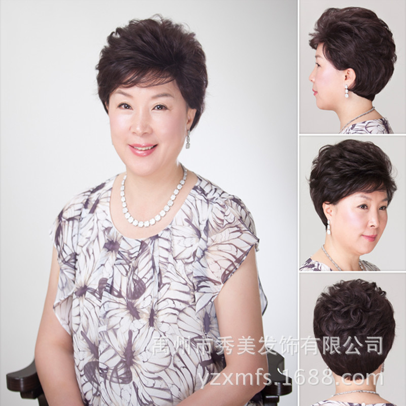 中年の真髪の女性のかつらはショートヘアの女性の中高年のかつらの新型のお母さんのかつらの女性のかつらのセットです。