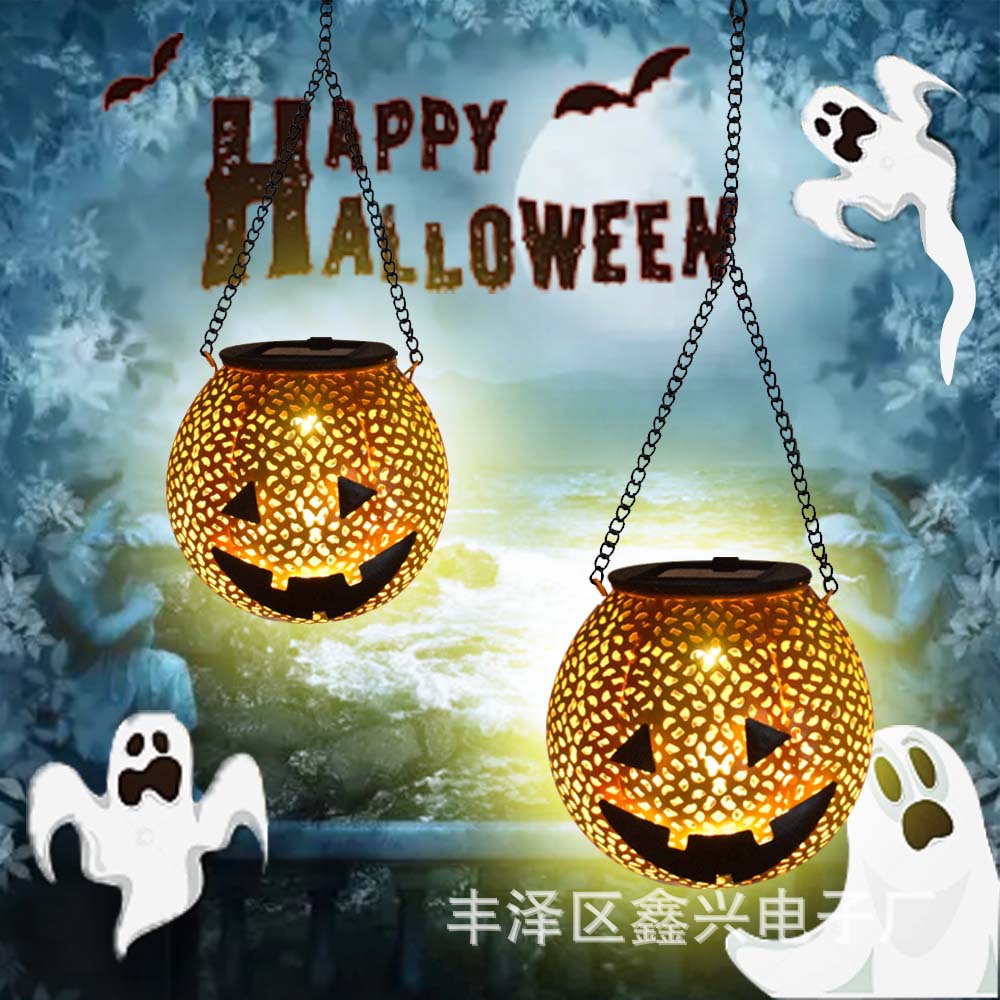 ハロウィンソーラーガーデン屋外庭の装飾鉄カボチャランタンペンダントクリエイティブ防水雰囲気ライト