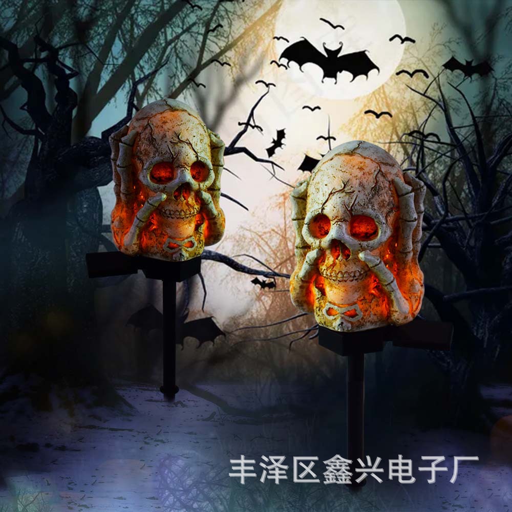 国境を越えた新しいソーラースカル樹脂クラフトグラウンドプラグハロウィンガーデンデコレーションパーティーホラー雰囲気ライト