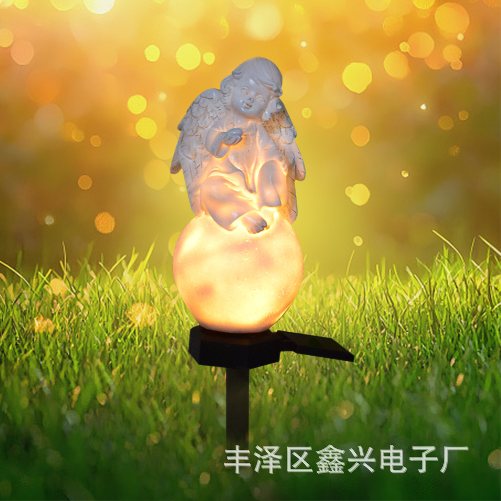 国境を越えた太陽エネルギー屋外別荘庭園装飾景観配置芝生天使樹脂床ランプ