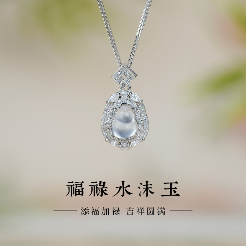 Fulu Shuangquan 高氷水泡翡翠ひょうたん縁起の良い女性ペンダント鎖骨チェーン象嵌ファッショナブルで多用途なライブブロードキャスト新しい中国風