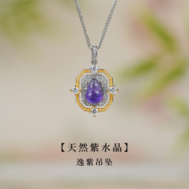 メーカー卸売直販天然アメジストひょうたんペンダント鎖骨チェーン女性用象嵌多用途気質ハイエンドペンダント