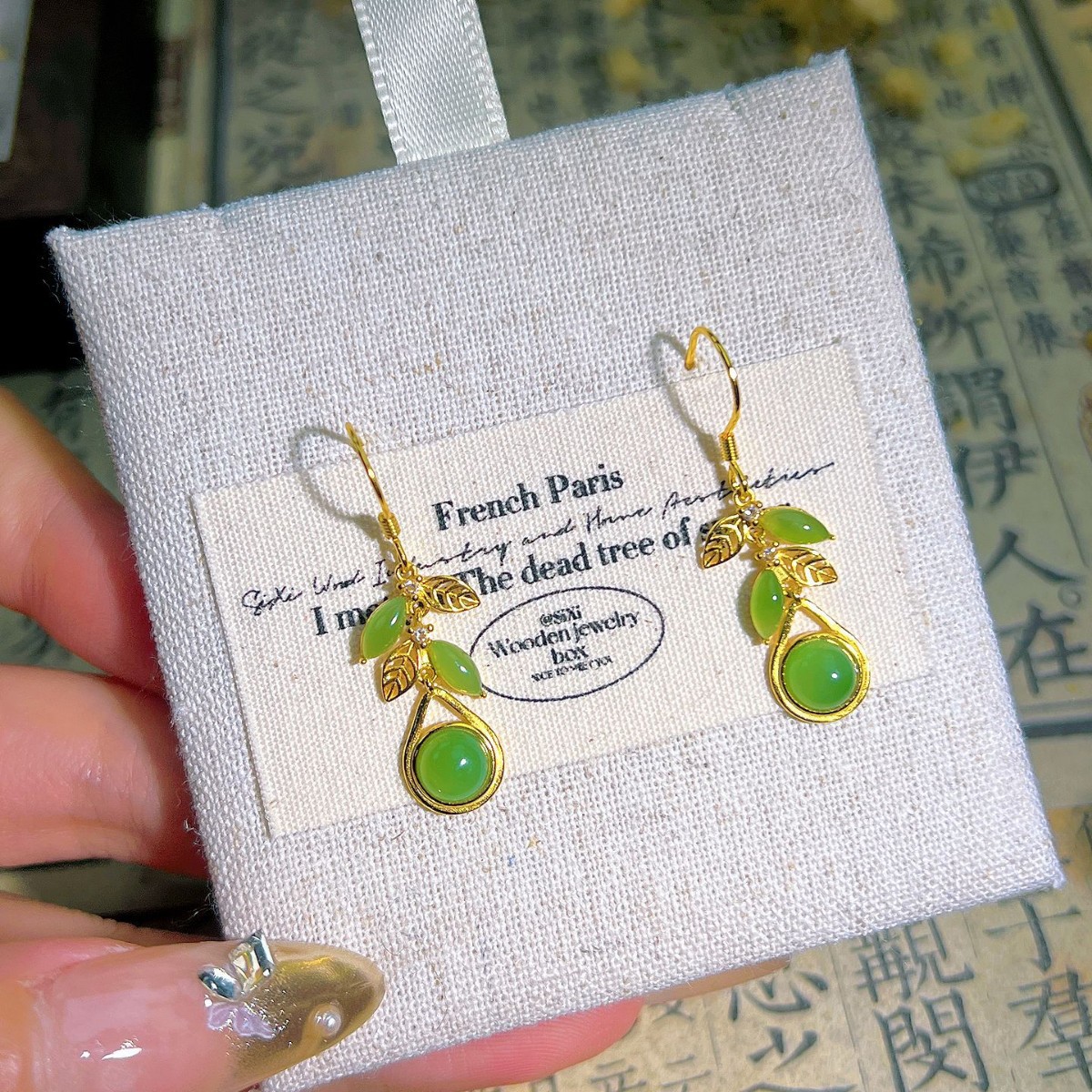 ファッショナブルな天然水泡翡翠の福と幸のひょうたん新しい中国風の女性のイヤリングライト高級ハイエンドシンプルなニッチイヤリングイヤリング