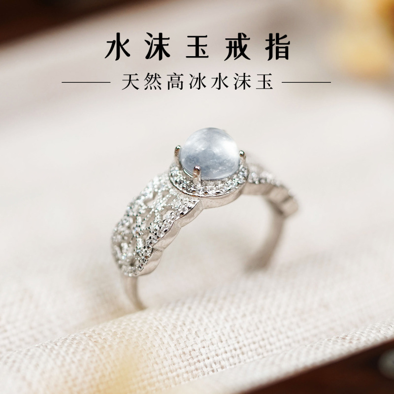 新しい中国風の天然高氷種水泡翡翠象嵌中空卵面リング、男性と女性用、多用途のシンプルでファッショナブルなリング