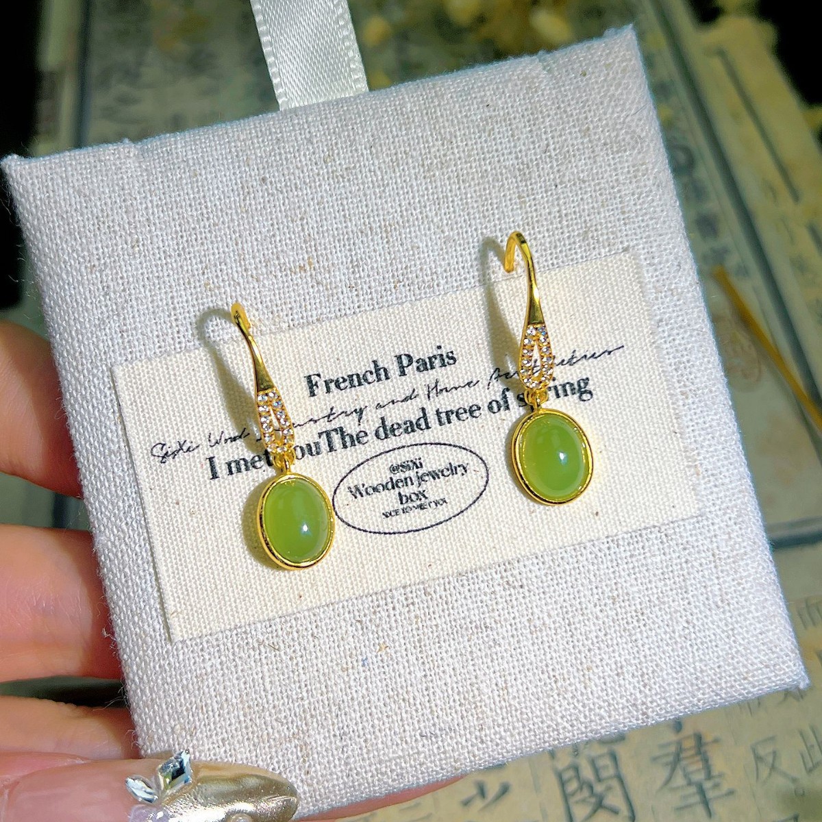 高貴なエスニックスタイルのHetian Jade Jaspers Earrings S925スターリングシルバーイヤリング女性用韓国風エレガントイヤリング