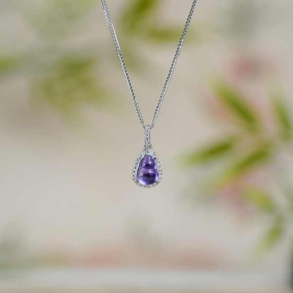 紫水晶天然紫水晶水沫玉福禄葫芦ペンダント、流れるような装飾が施された、多用途でファッショナブルなジュエリー