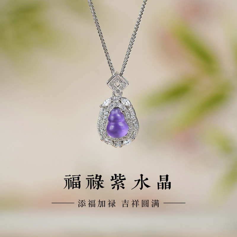 新しい中国風のアメジストの祝福と幸福のひょうたんペンダント、ダイヤモンドがちりばめられた鎖骨チェーン、女性用のハイエンドペンダント、ファッショナブルで多用途