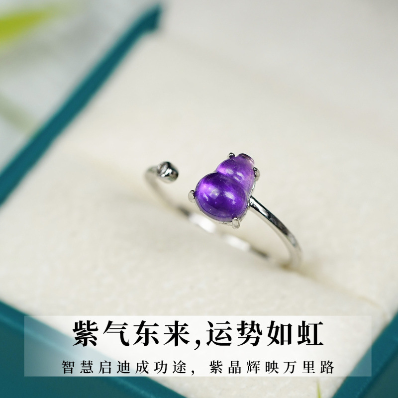天然紫水晶水沫玉福禄葫芦シンプルファッション九紫離火葫芦万能女性用指輪