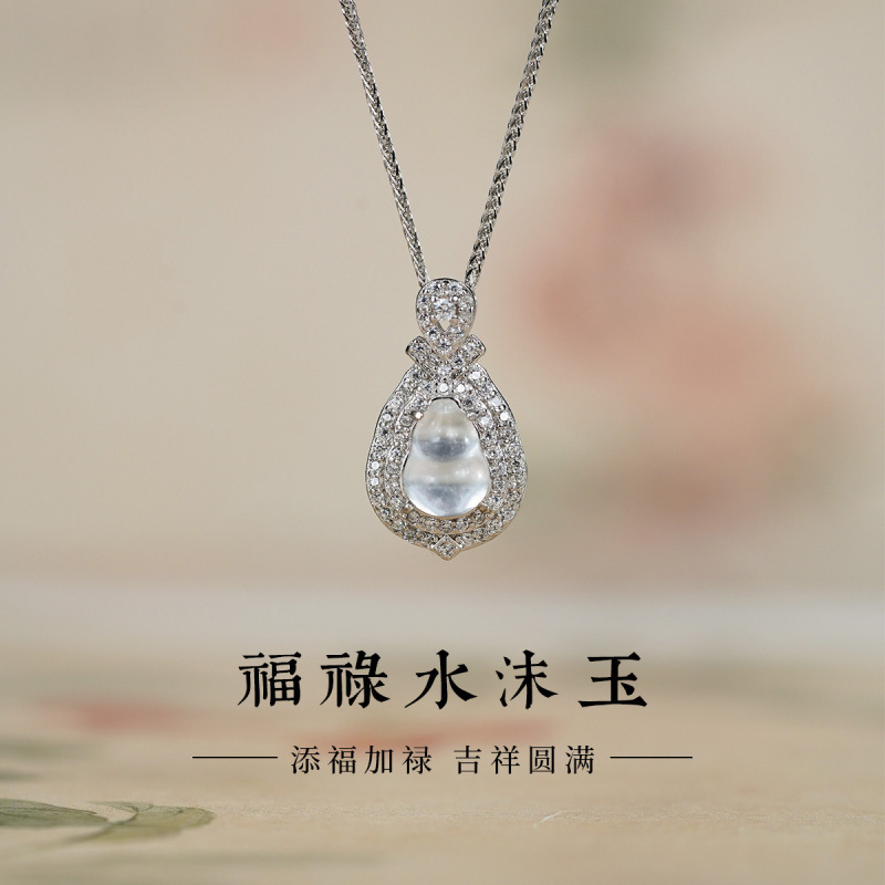新しい中国風のFulu氷種水泡翡翠ひょうたんペンダント、女性用、象嵌鎖骨チェーン、多用途でハイエンドのペンダント