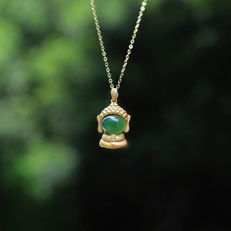 レトロ模造ホータン翡翠ジャスパー小さな仏ペンダント古代ゴールド鎖骨チェーンネックレス女性のギフトガールフレンドギフト