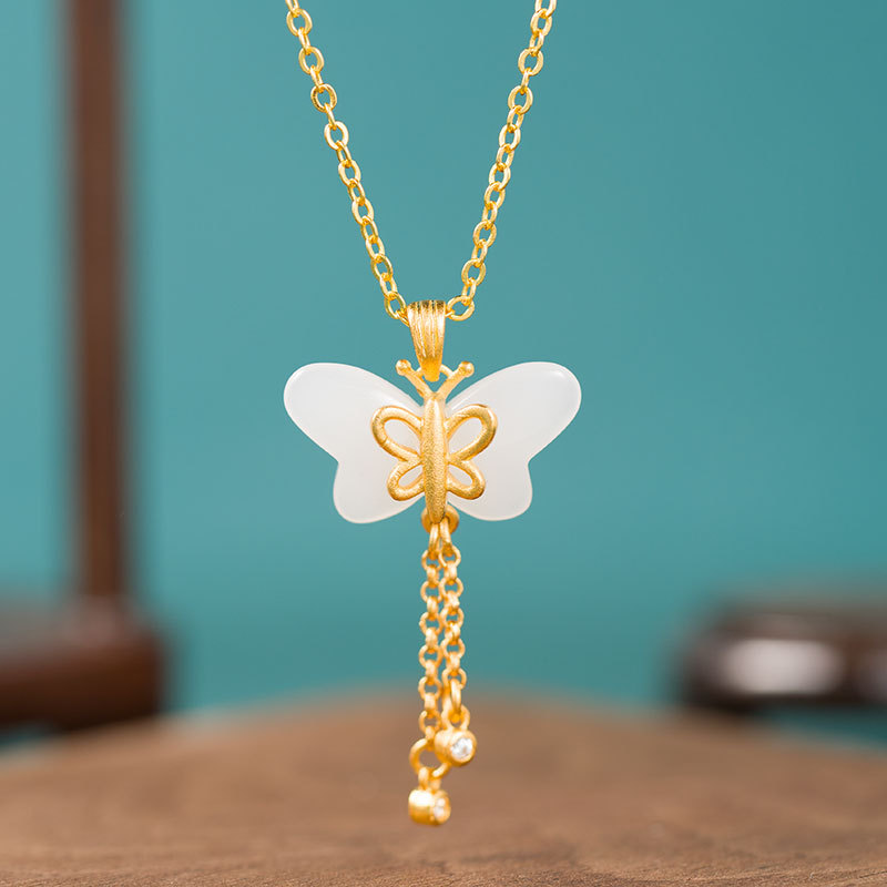 和田玉金のネックレスをまねる女性蝶の小清新なペンダントは金色の鎖のチェーンのアクセサリーの金の工芸をめっきして目上の人に送ります。