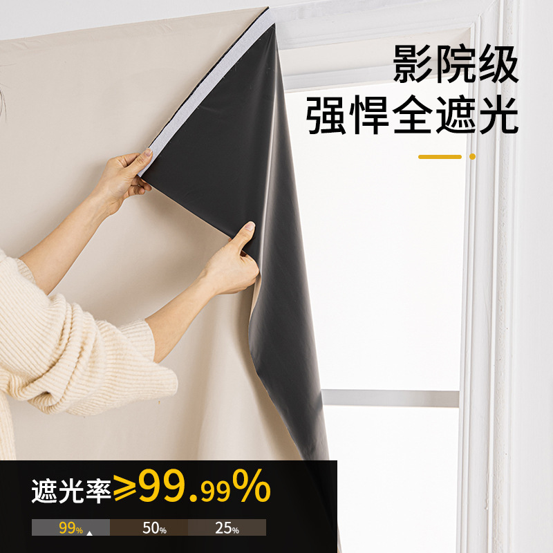 簡易自己粘着全遮光カーテン生地完成品穴なしマジックテープ取付寝室純色日よけ新型