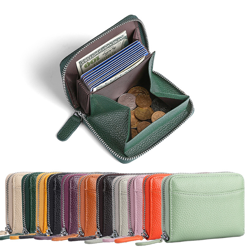 日本製革製小銭入れ、RFID盗難防止機能付き、男女兼用、ジッパー式、硬貨収納、カード分類