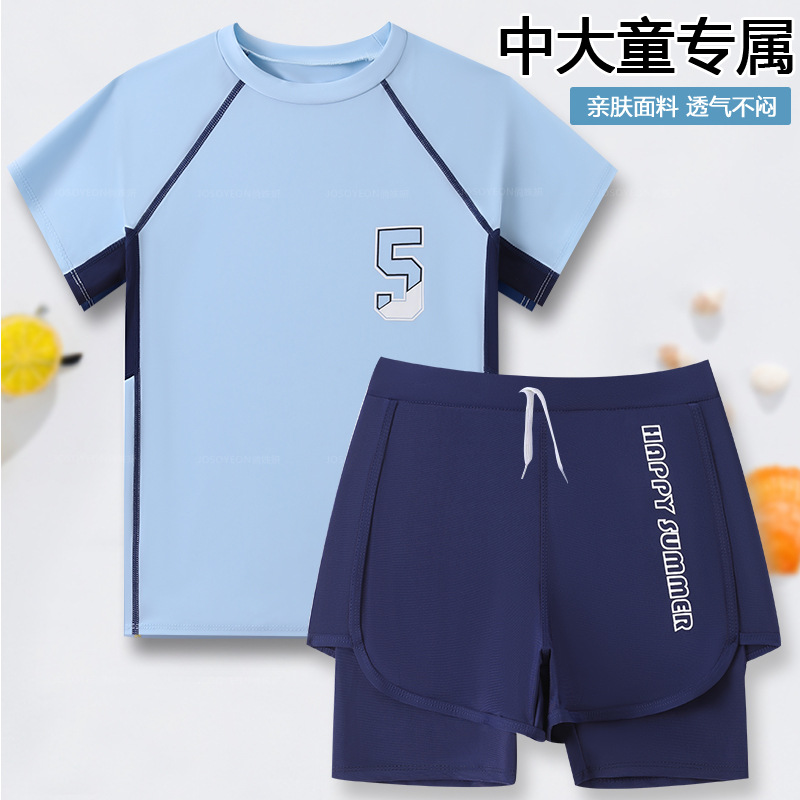 子供の水着の男の子の中で大きい子供の青少年の分体の男の子の水着の夏の2024の新型の温泉の水泳のズボンのスーツ
