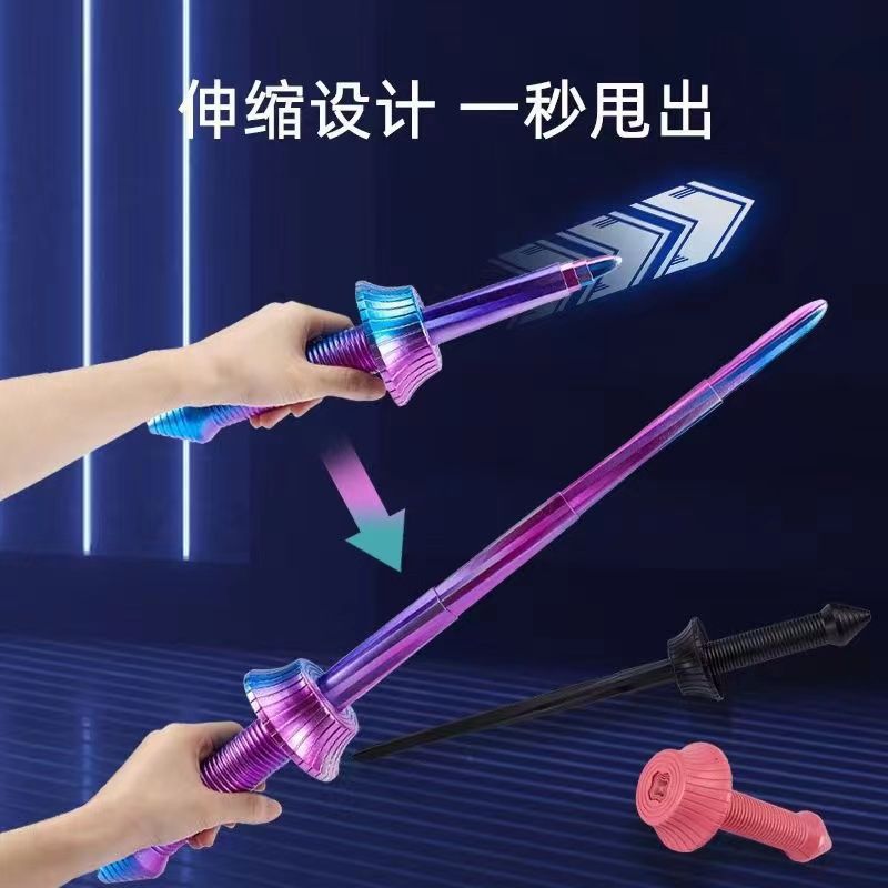震え音熱売同金3dプリント武士伸縮剣糸滑り投げ創造伸縮剣解凍子供玩具