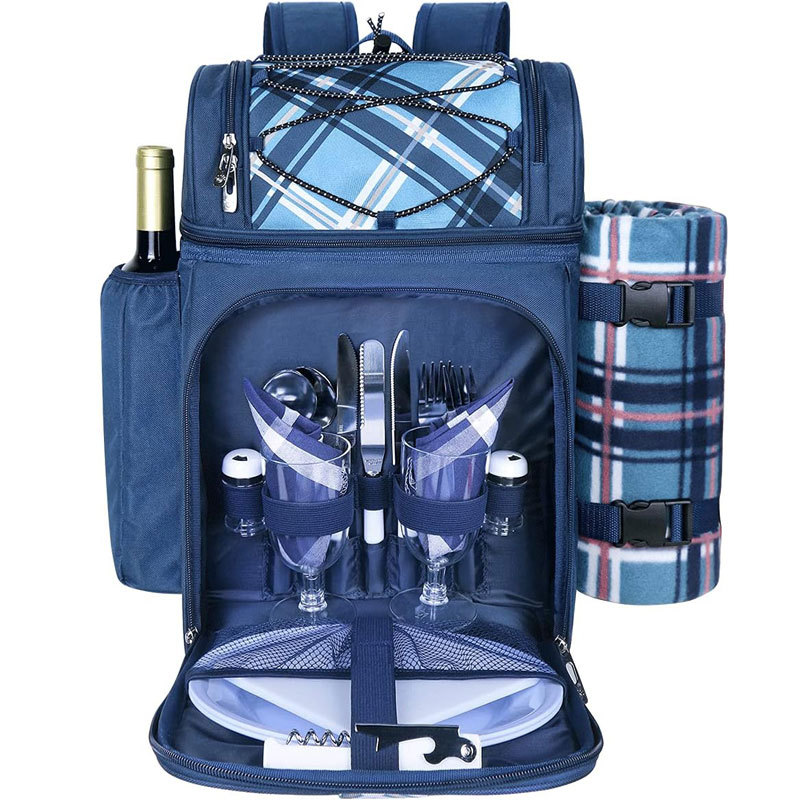 国境を越えてピクニック用バックパック2つの保温冷蔵仕切り酒棚羊毛布食器セット