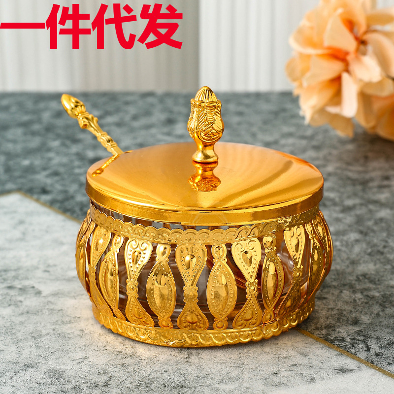 鉄製砂糖缶スプーン付き白砂糖貯金箱家庭用密封貯蔵物ガラス収納缶台所調味料箱