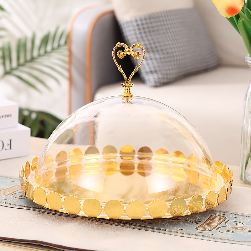 鉄製の軽い贅沢な果物皿家庭用リビングルームのお茶の蓋付き高級キャンディナッツケーキ収納ケース透明ドライフルーツ皿