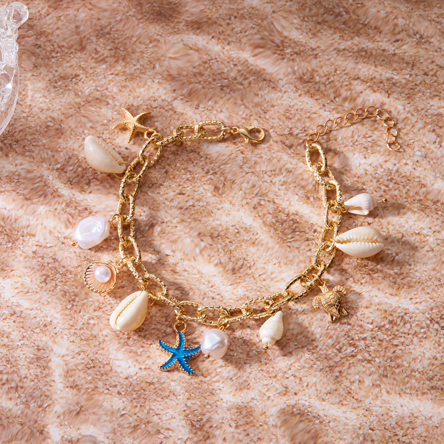欧米の国境を越えた新型ビーチ貝殻アクセサリー夏ファッション百合海星貝殻海螺真珠ブレスレット卸売り