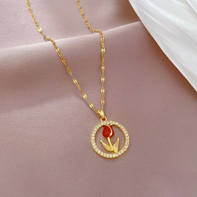 夏の新型ファッションの小さい清新な花のネックレスにはチタン鋼の滴油のバラの花が入っています。