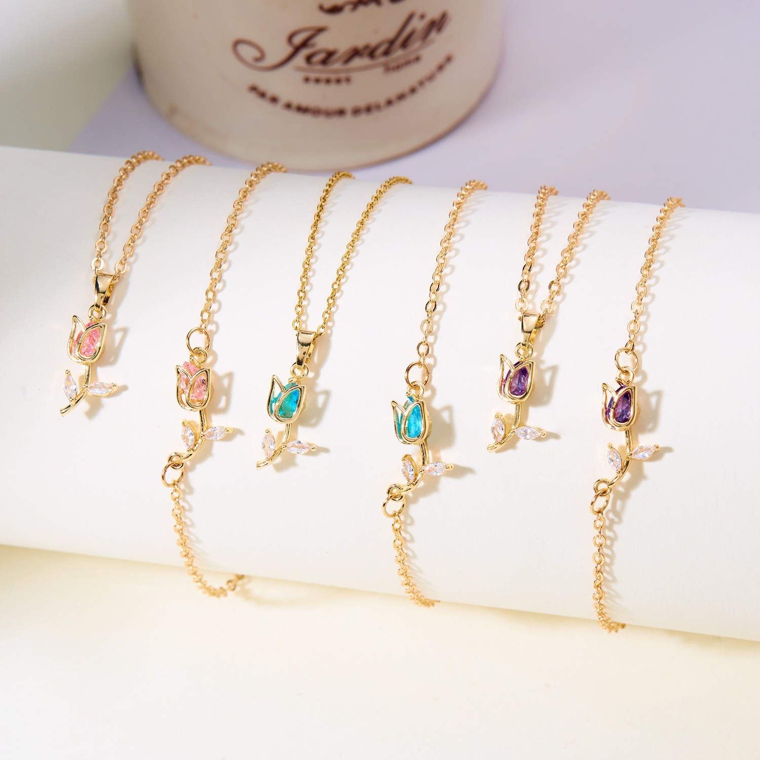 ヨーロッパとアメリカの新しいチューリップネックレス、女性らしい雰囲気のフラワーネックレス、ダイヤモンド付きチューリップブレスレットとネックレスのセット