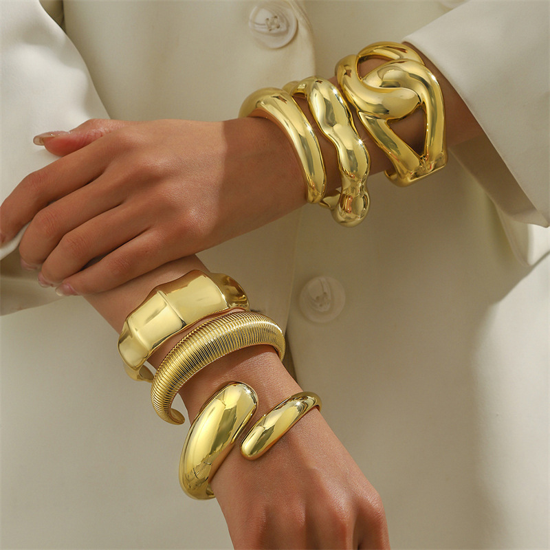 不規則な楕円形のワイドクロス幾何学ブレスレット、ファッショナブルでシンプルなデザイン、ニッチで誇張された雰囲気のブレスレット