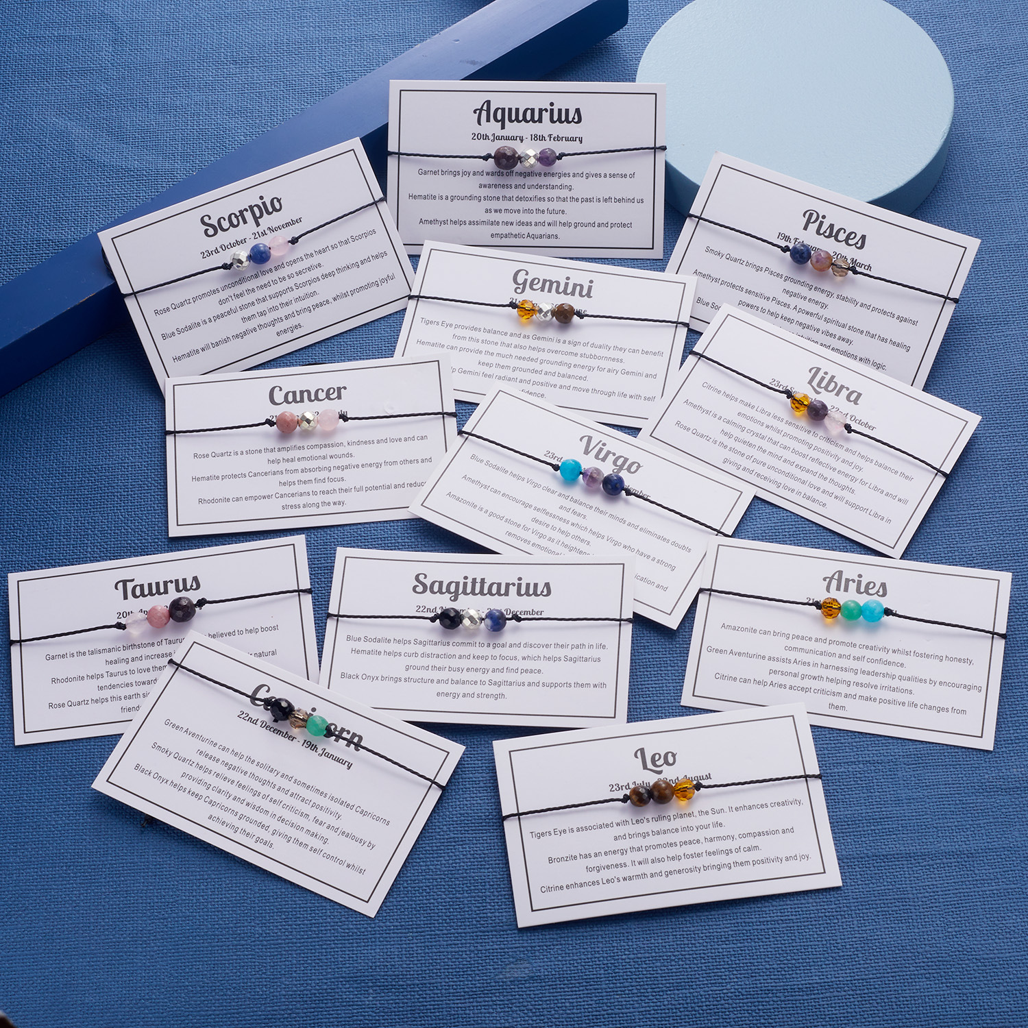 欧米風の十二星座のブレスレットのファッション的な切断面の石の数珠のブレスレットの手編みの男性の手の串の卸売り