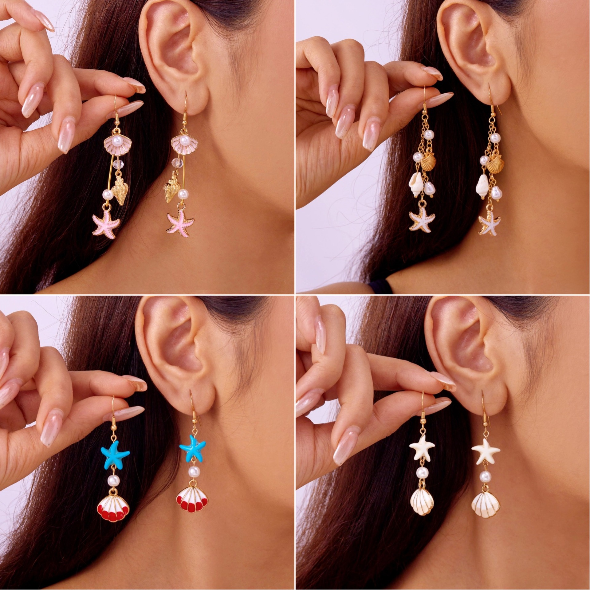 クロスボーダーの新型の清新な海洋の貝殻のイヤリングのファッションは夏の貝の貝殻の海星のイヤリングの女性の卸売りを組み合わせます。