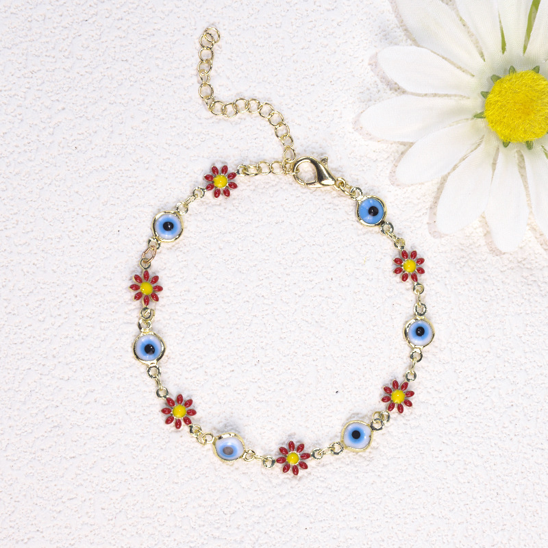 クロスボーダー悪魔の目カラー花小デイジー滴油ブレスレット気質レディース調節可能な青い目ブレスレット